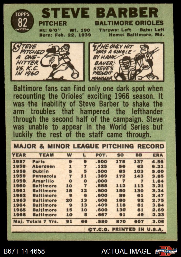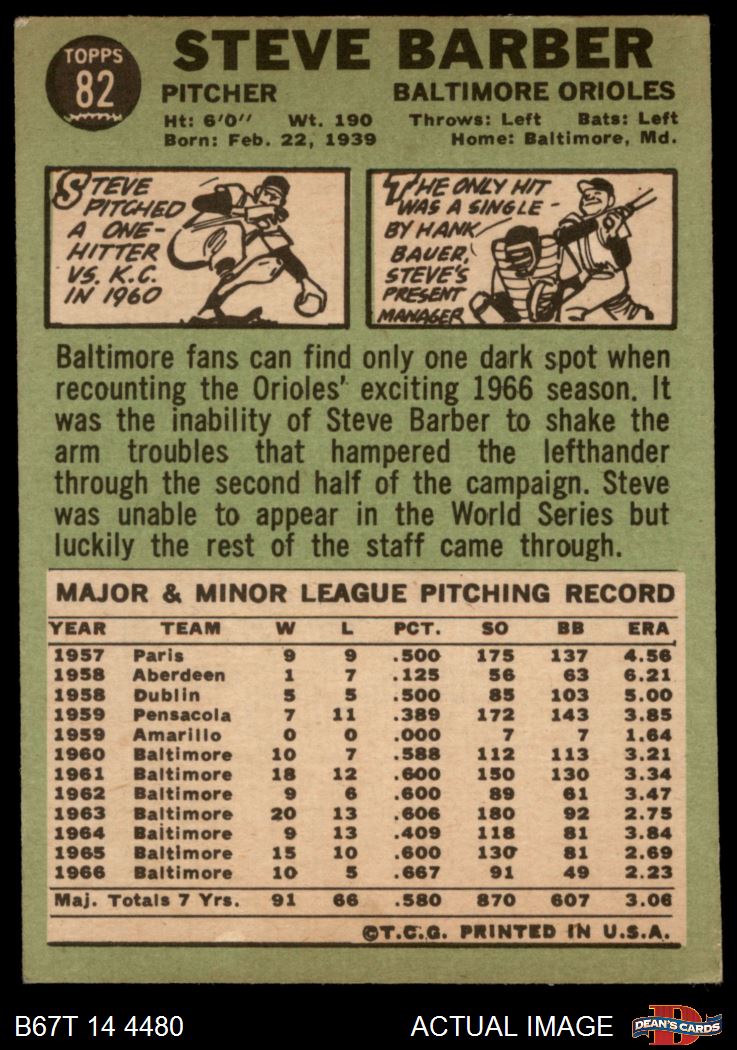 1967 Topps #82 Steve Barber 4 - VG/EX