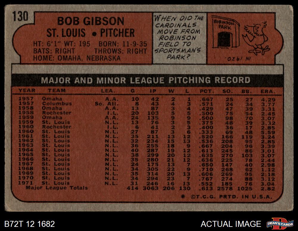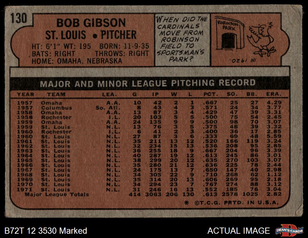 1972 Topps #130 Bob Gibson Front Thumbnail