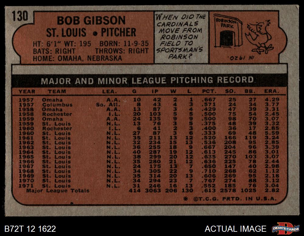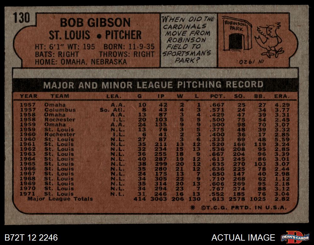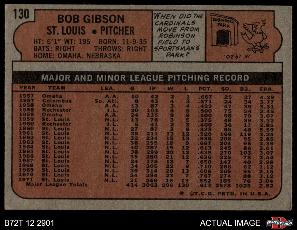 1972 Topps #130 Bob Gibson 3 - VG