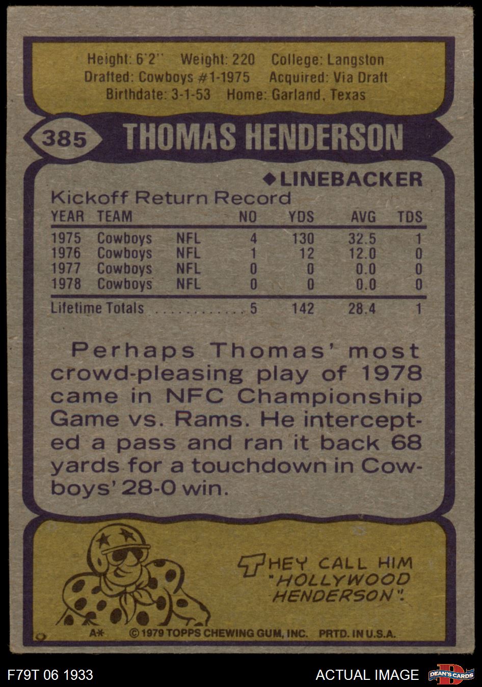 1979 Topps #385 Thomas Henderson 2 - GOOD