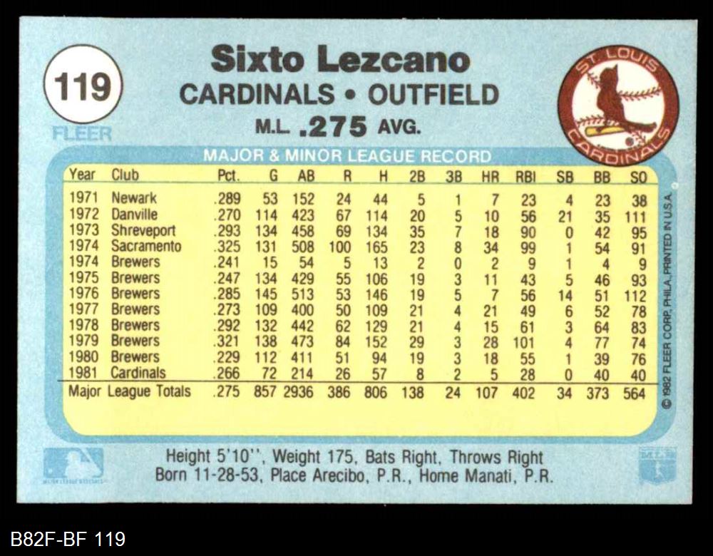 1982 Fleer #119 Sixto Lezcano