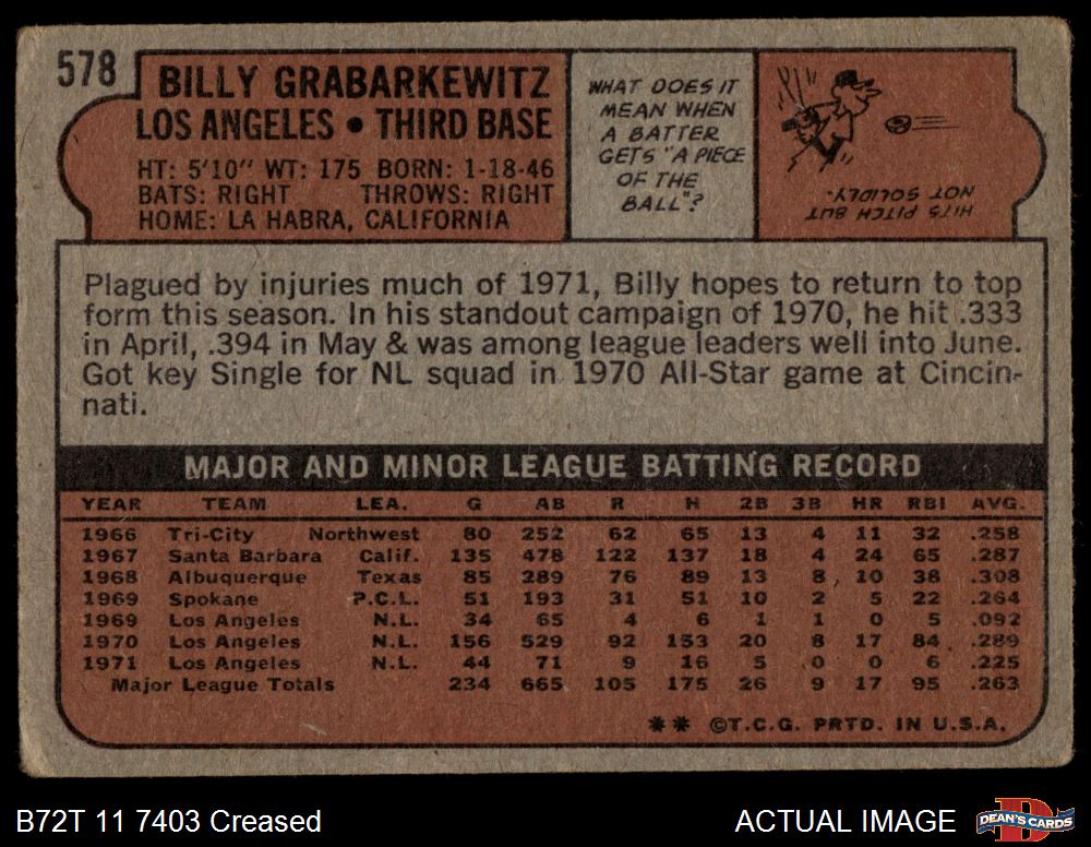 1972 Topps #578 Billy Grabarkewitz 1 - POOR