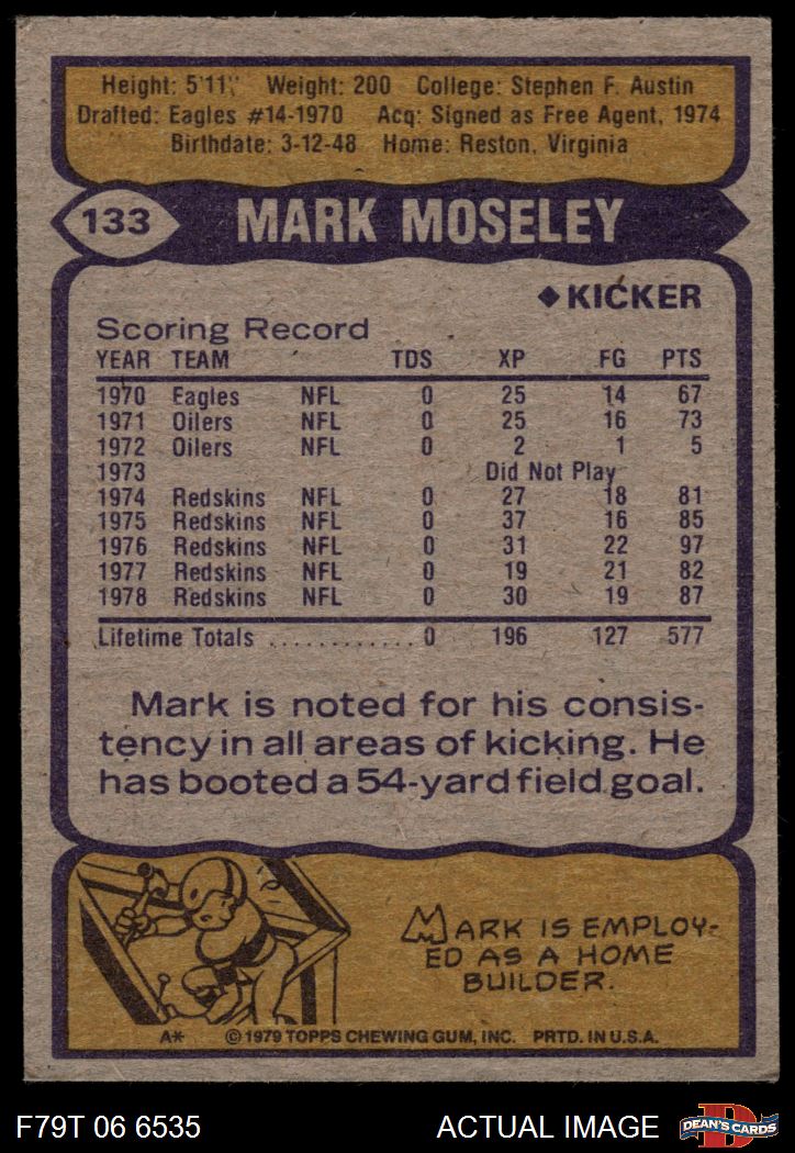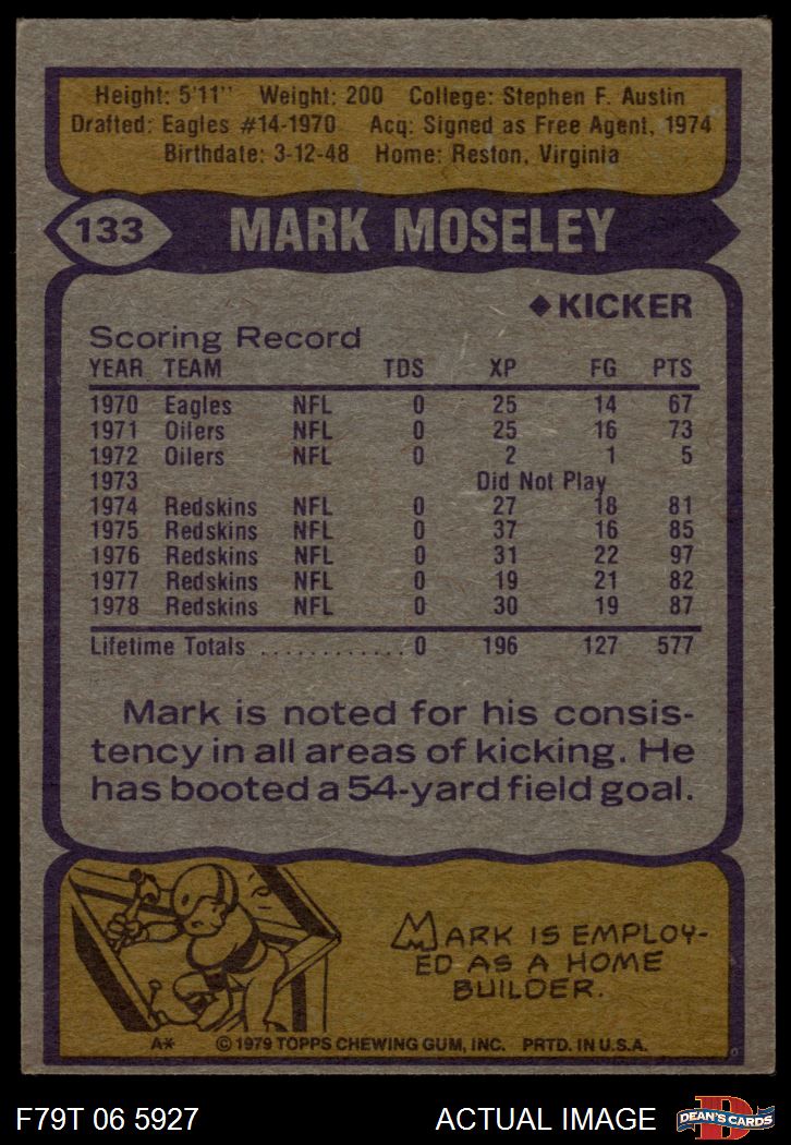 1979 Topps #133 Mark Moseley 3 - VG
