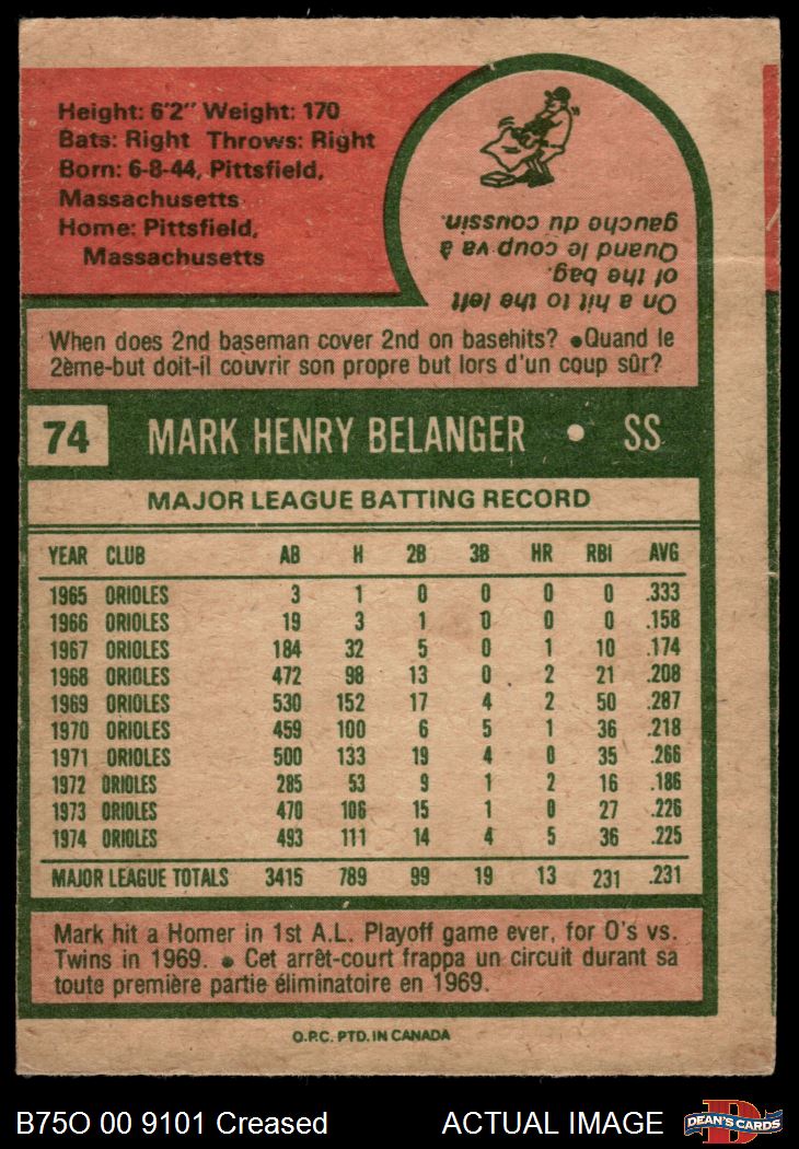 1975 O-Pee-Chee #74 Mark Belanger 2 - GOOD