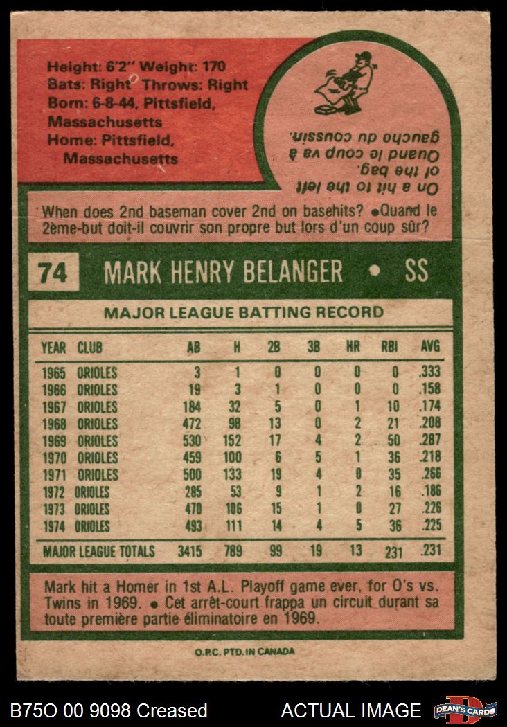 1975 O-Pee-Chee #74 Mark Belanger 3.5 - VG+
