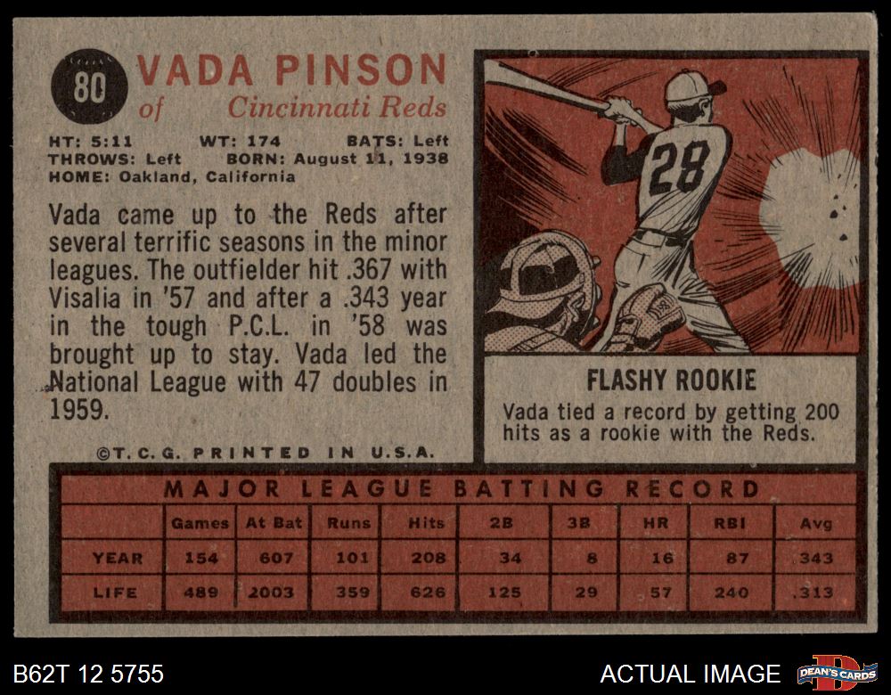 1962 Topps #80 Vada Pinson 2 - GOOD