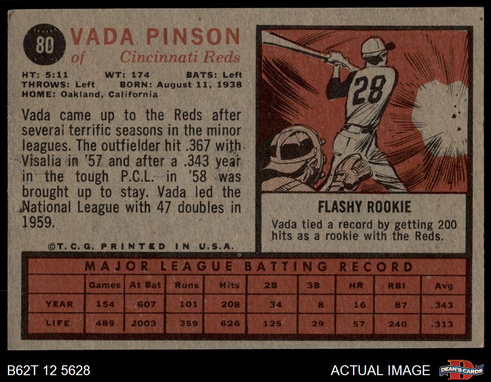 1962 Topps #80 Vada Pinson 6 - EX/MT