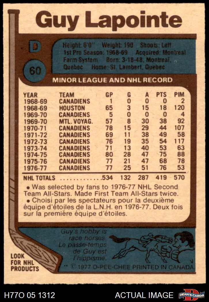 1977 O-Pee-Chee #60 Guy Lapointe 8 - NM/MT