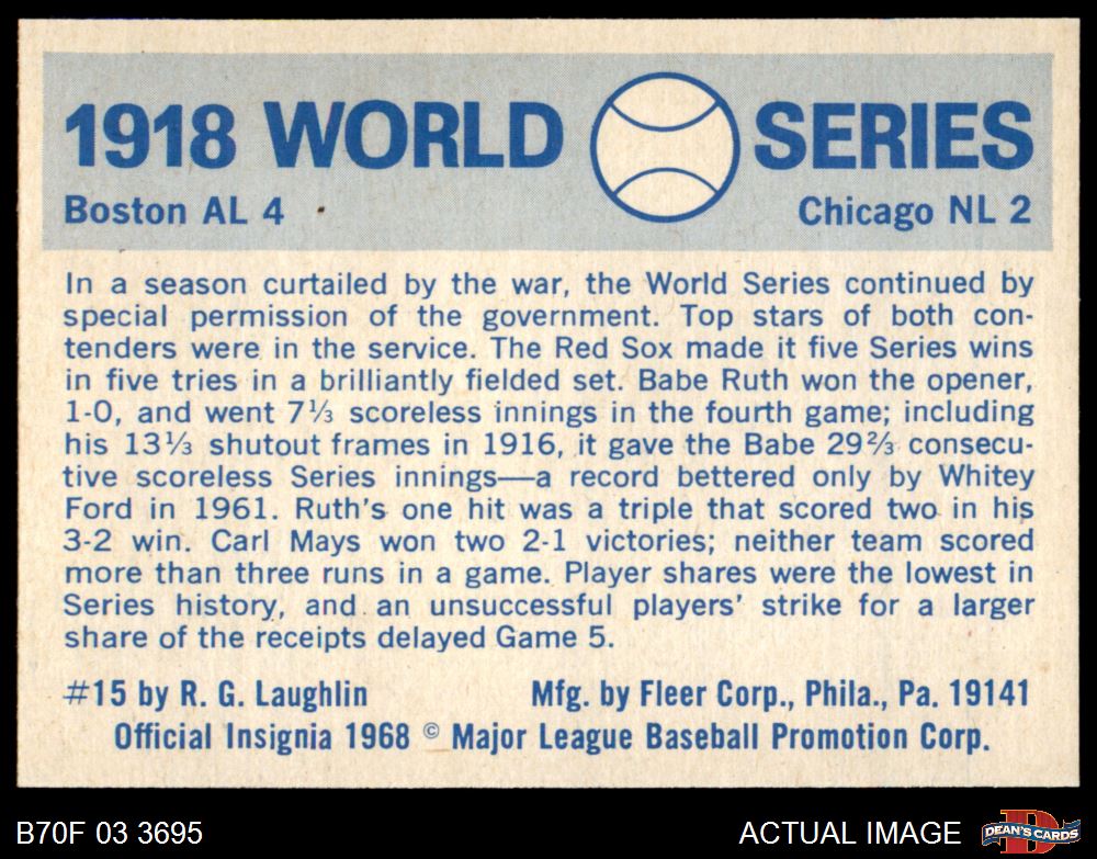 1970 Fleer World Series #15 1918 Red Sox vs. Cubs 7 - NM