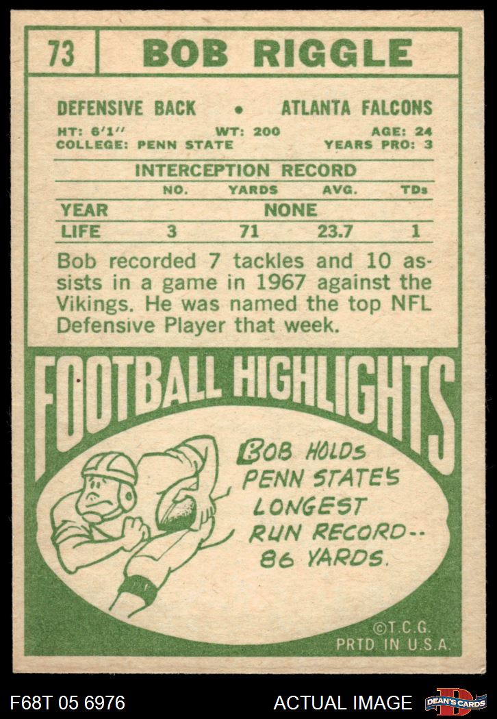 1968 Topps Football Cards (2,553 available)1968 Topps Falcons (137 available)