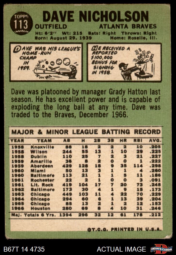 1967 Topps #113 Dave Nicholson 1.5 - FAIR
