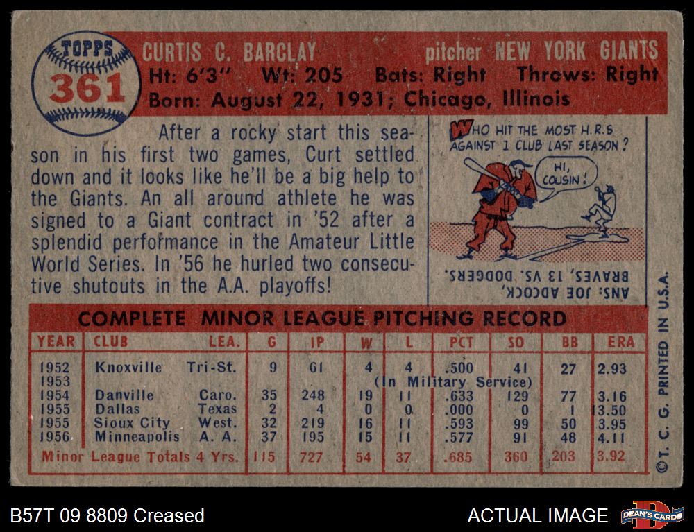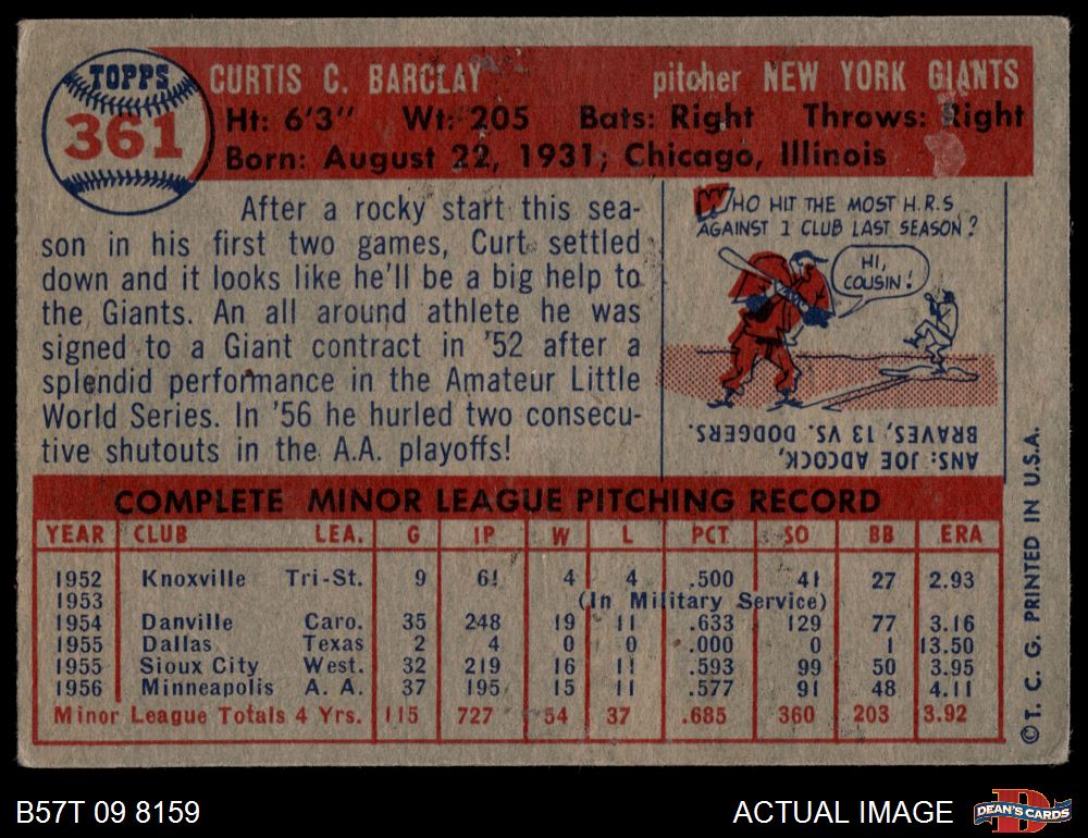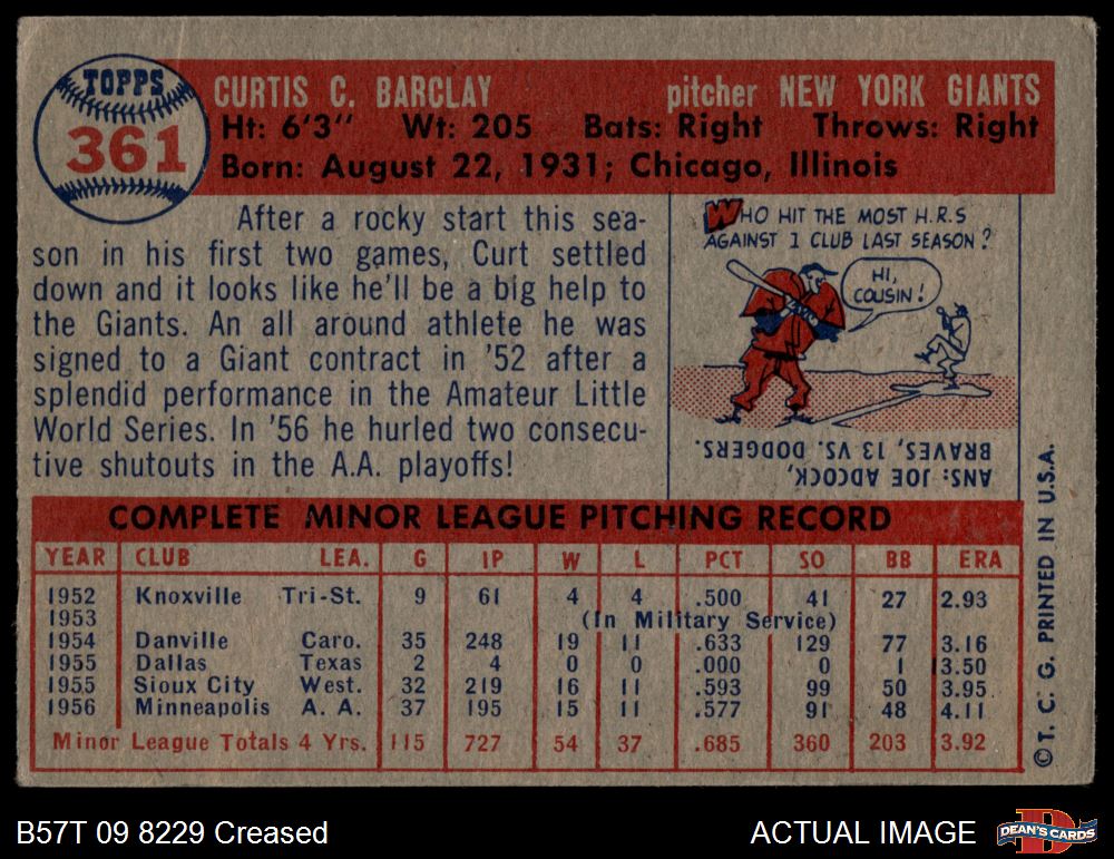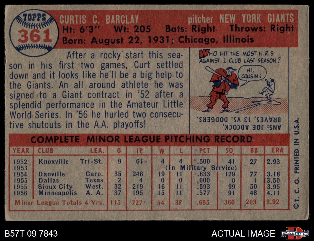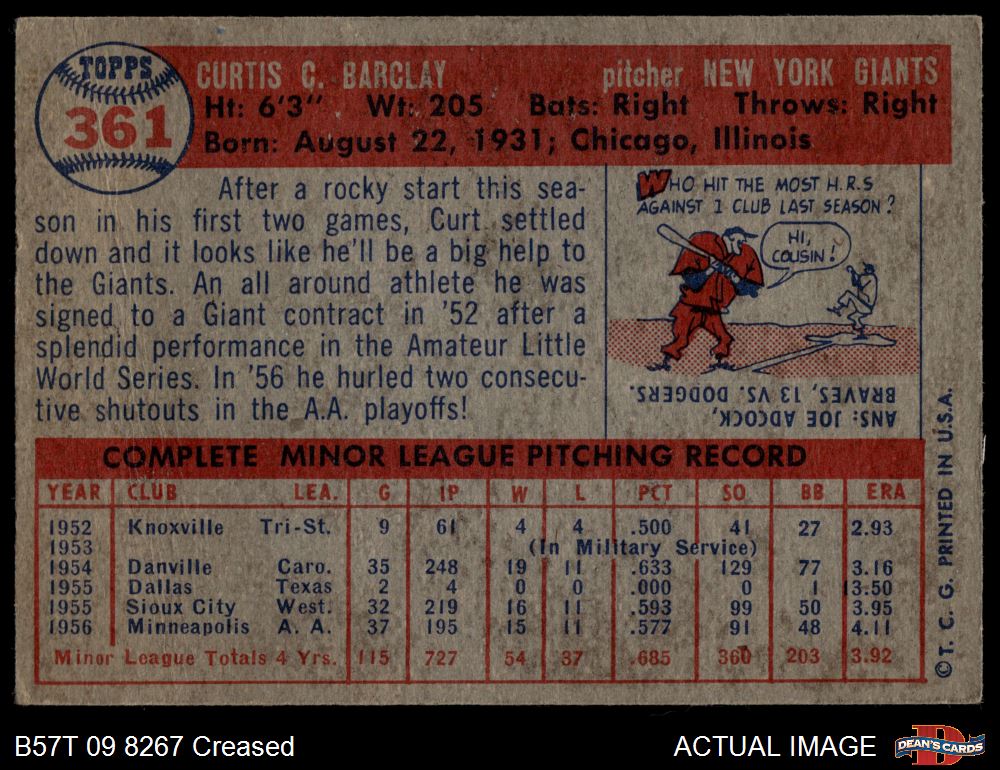 1957 Topps #361 Curt Barclay 2 - GOOD