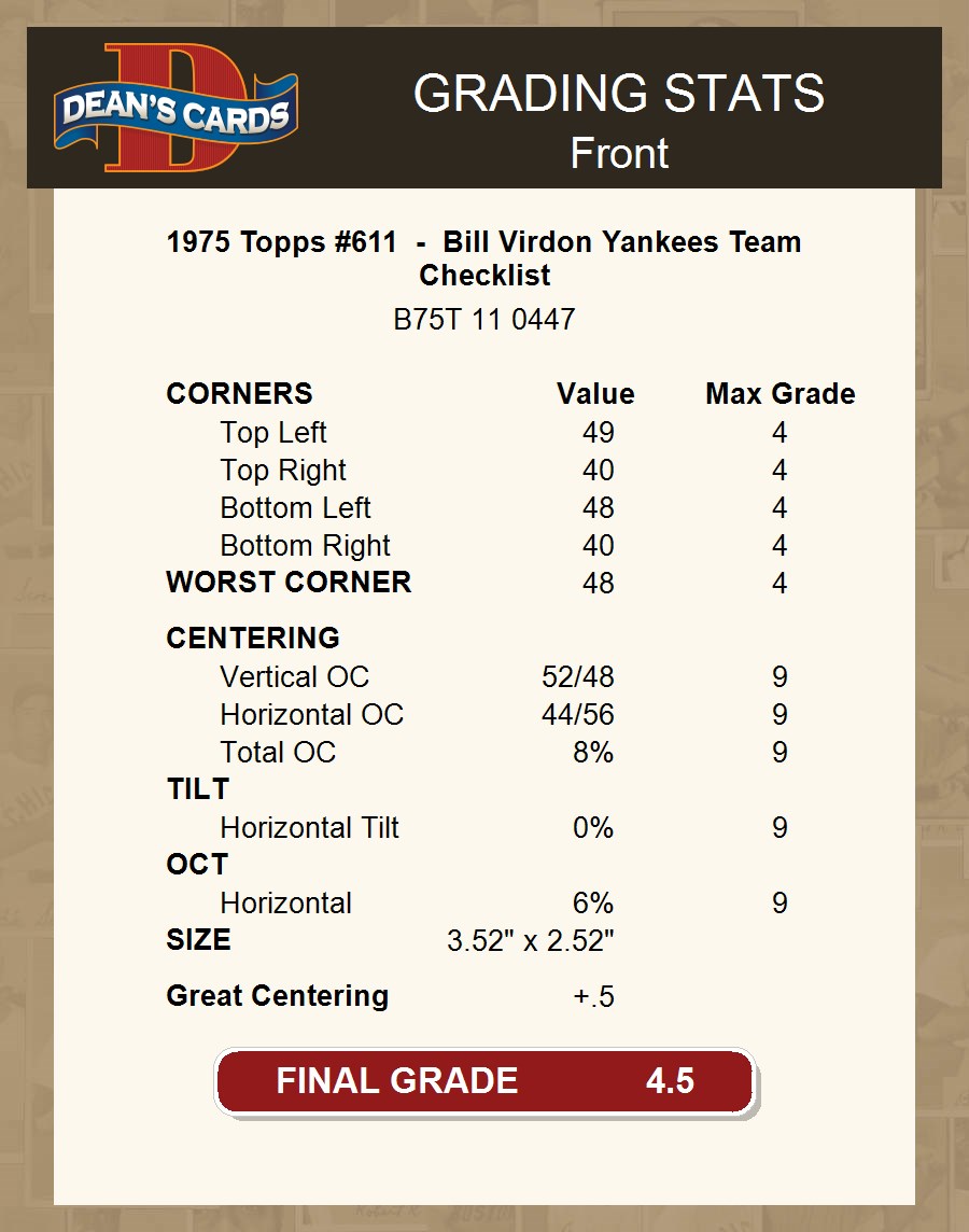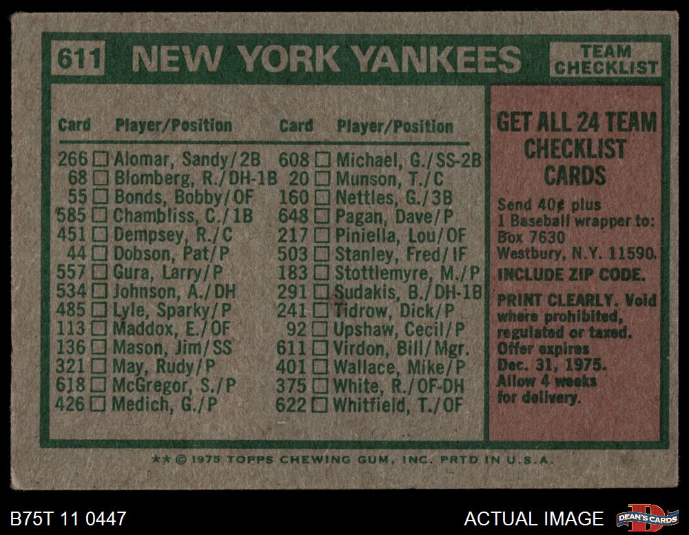 1975 Topps #611 - Bill Virdon Yankees Team Checklist 4.5 - VG/EX+