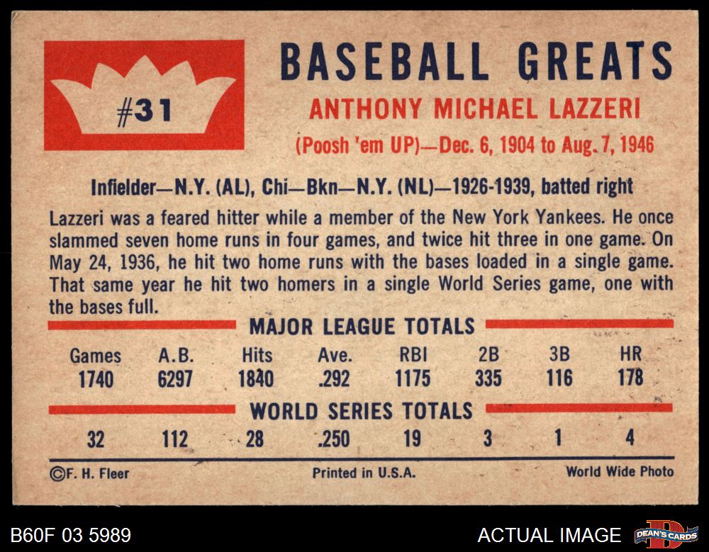 1960 Fleer #31 Tony Lazzeri 2 - GOOD