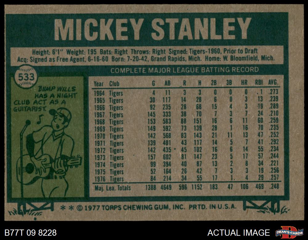 1977 Topps #533 Mickey Stanley 6 - EX/MT