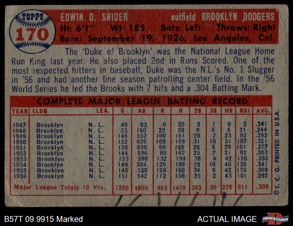 1957 Topps #170 Duke Snider 1 - POOR