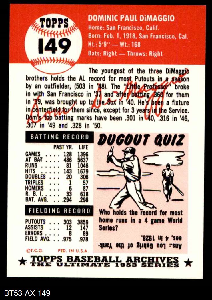 1953 Topps Archives #149 Dom DiMaggio 8 - NM/MT