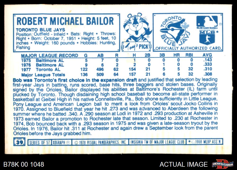 1978 Kellogg's #39 Bob Bailor 4 - VG/EX