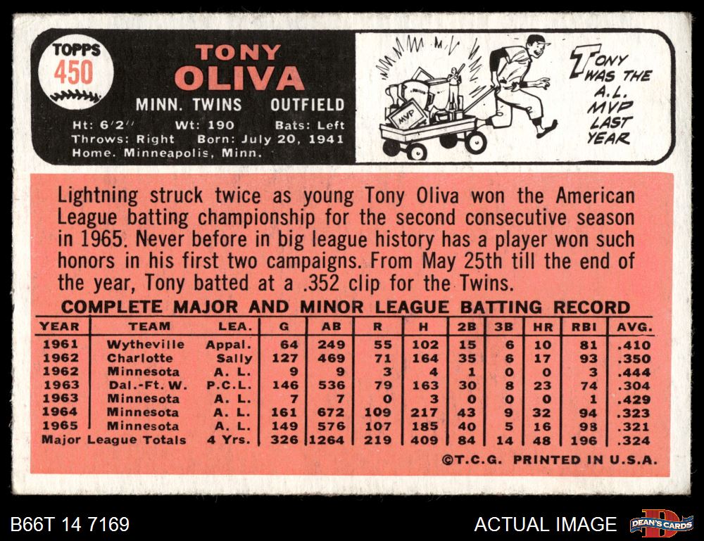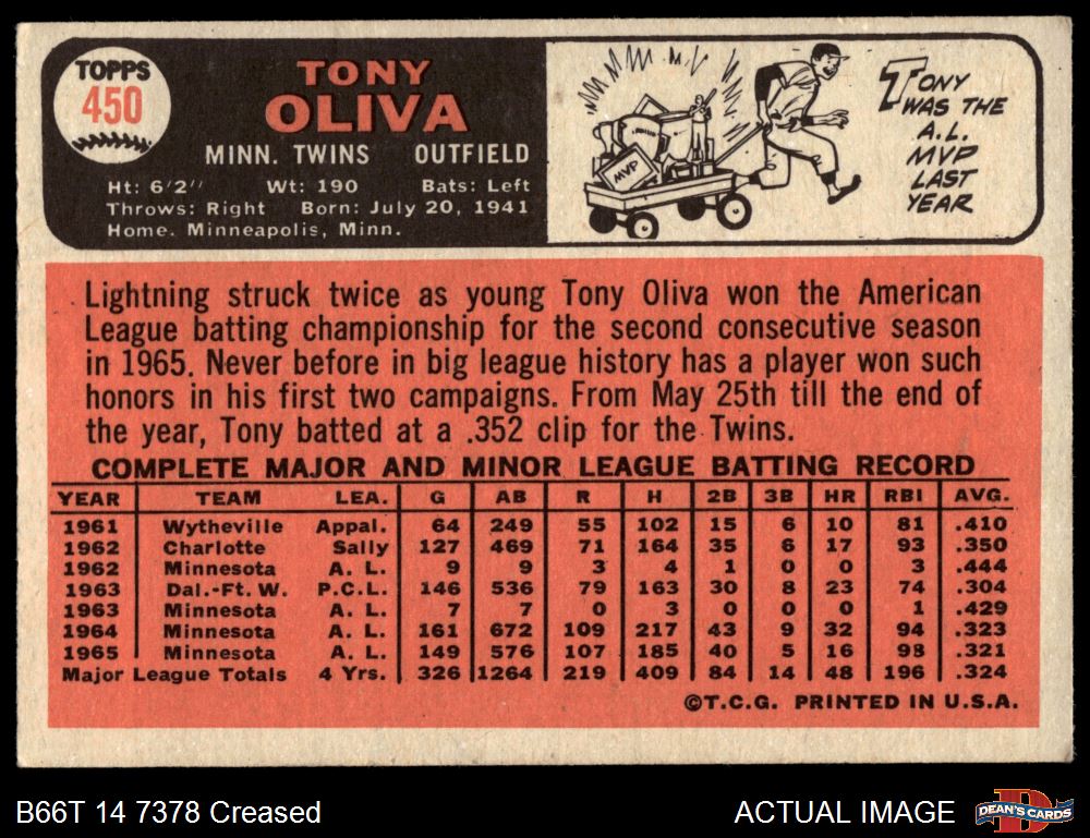 1966 Topps #450 Tony Oliva Front Thumbnail