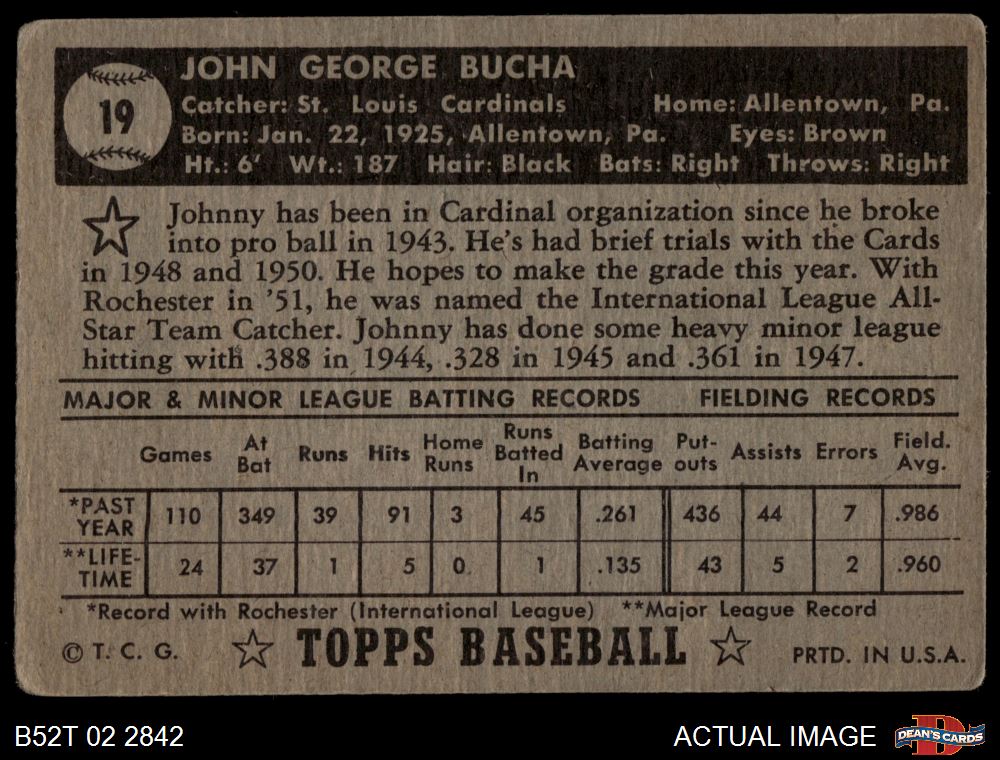 1952 Topps #19 Johnny Bucha