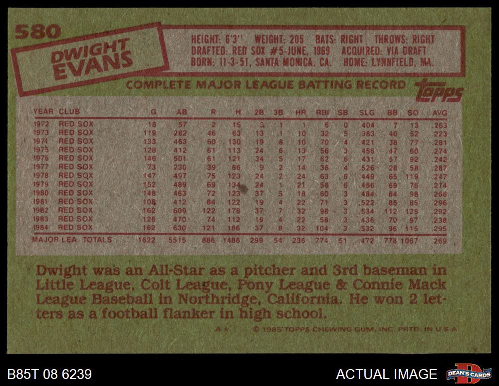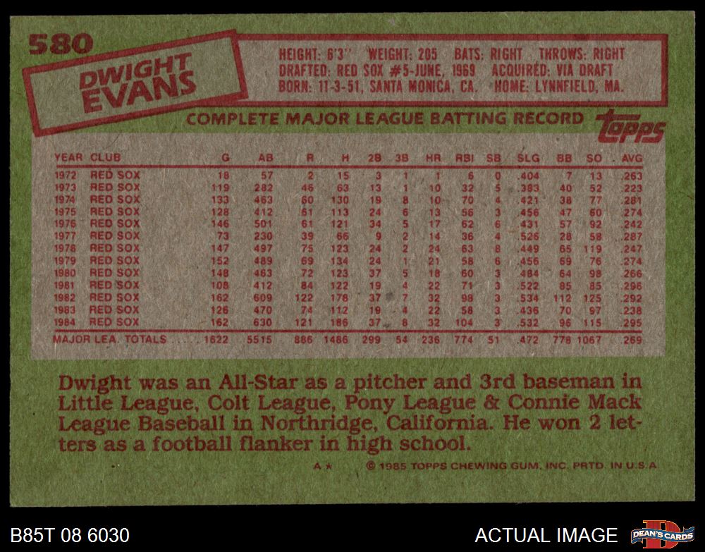 1985 Topps #580 Dwight Evans 7 - NM
