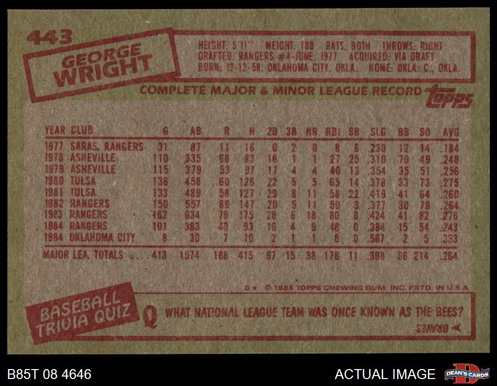 1985 Topps #443 George Wright 8.5 - NM/MT+