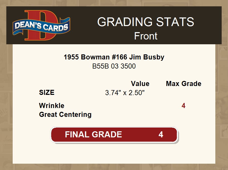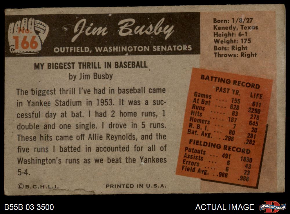 1955 Bowman #166 Jim Busby 4 - VG/EX