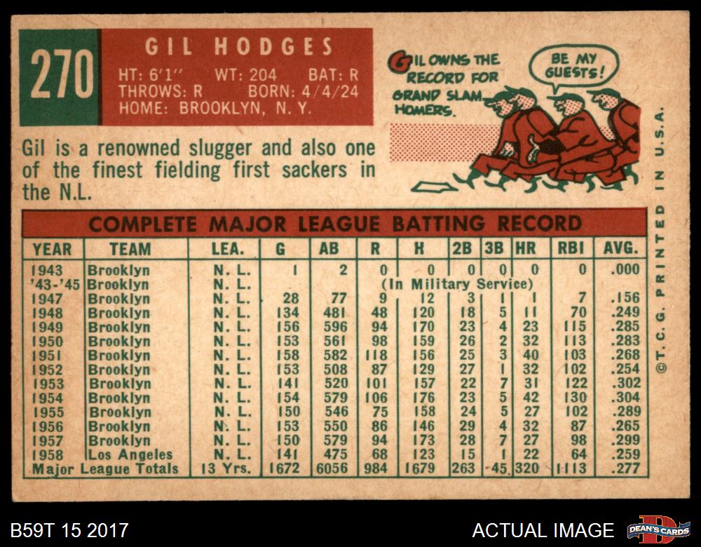 1959 Topps #270 Gil Hodges 6 - EX/MT