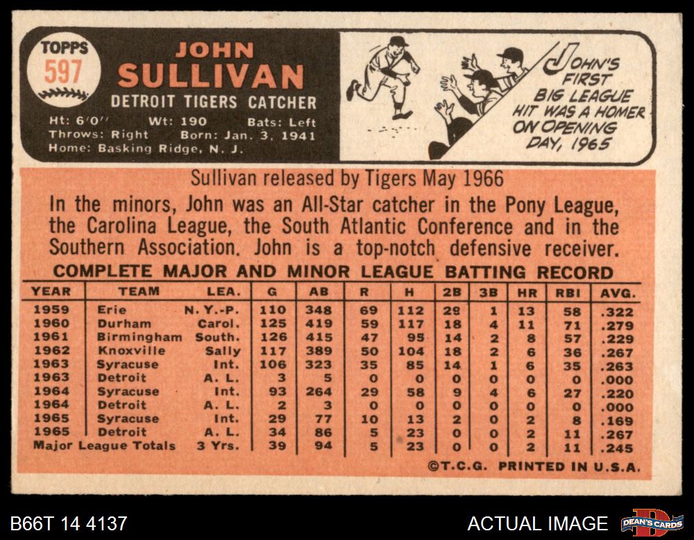 1966 Topps #597 John Sullivan 4 - VG/EX
