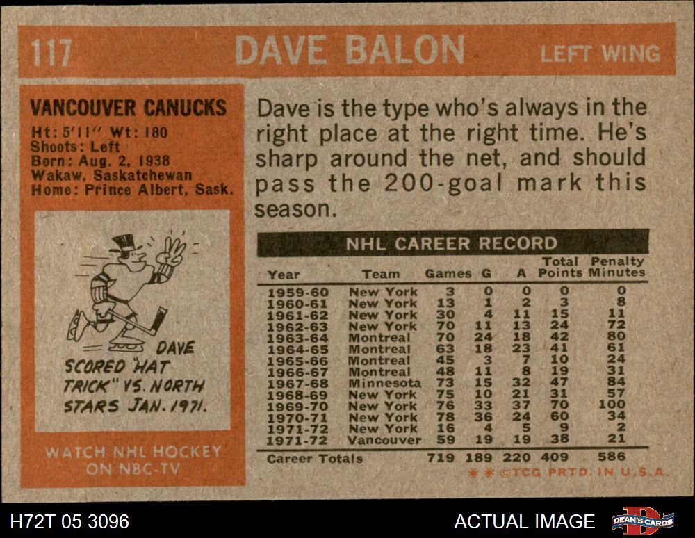 1972 Topps #117 Dave Balon 7 - NM