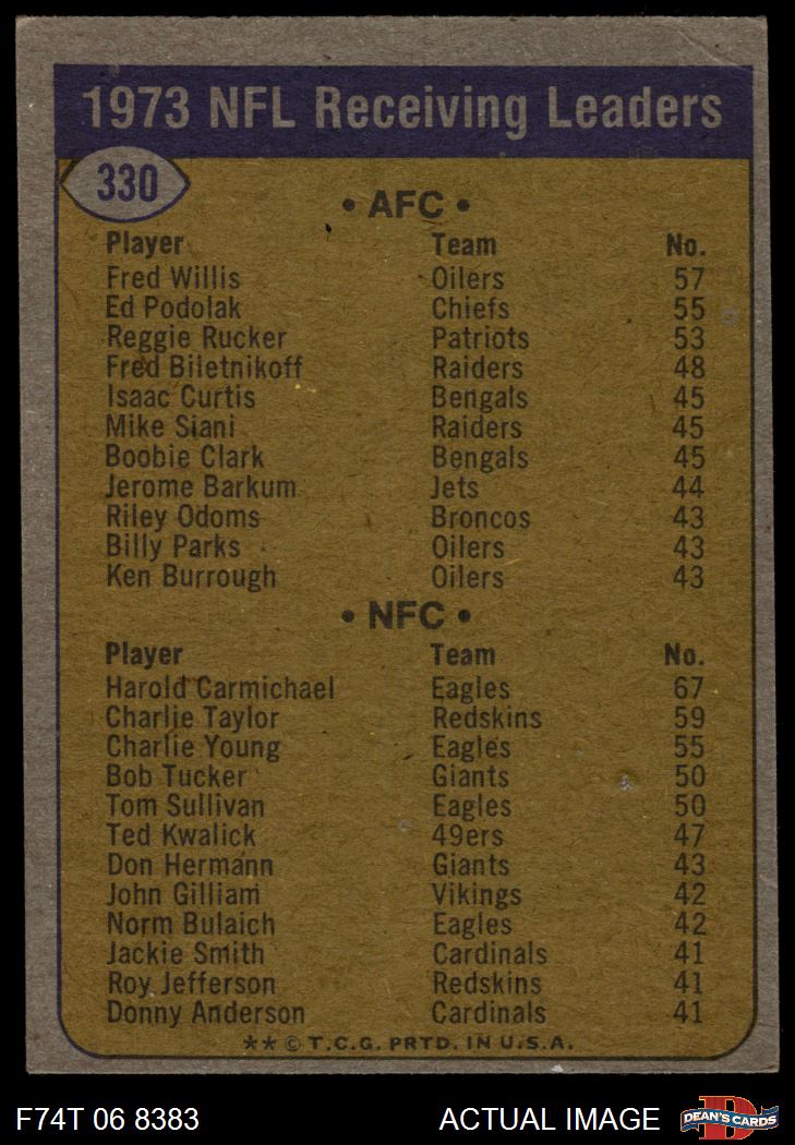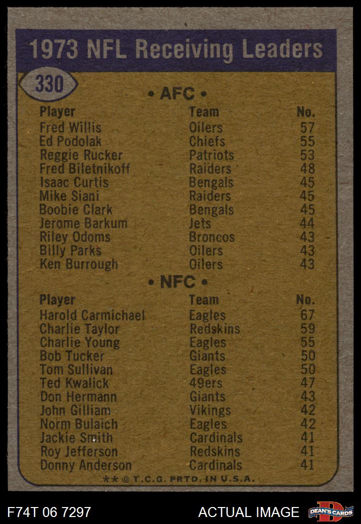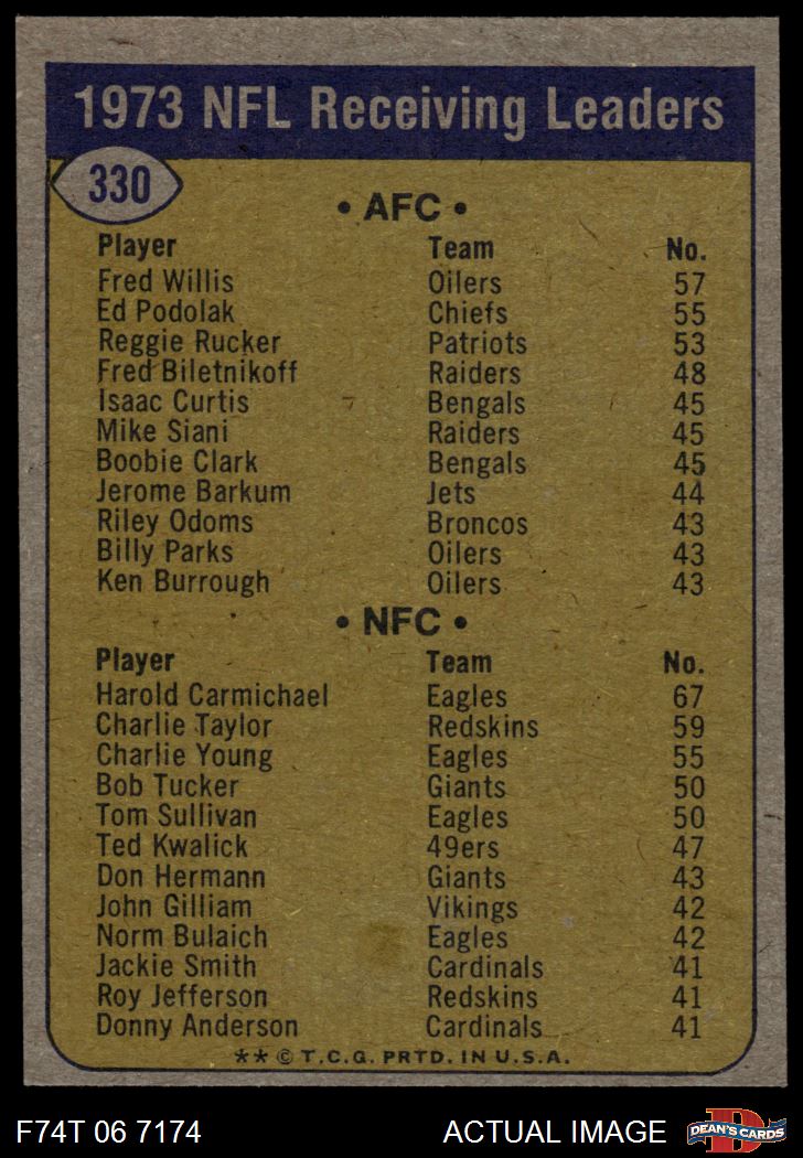 1974 Topps #330 Receiving Leaders