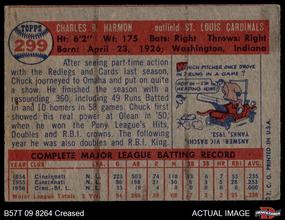 1957 Topps #299 Chuck Harmon 2 - GOOD