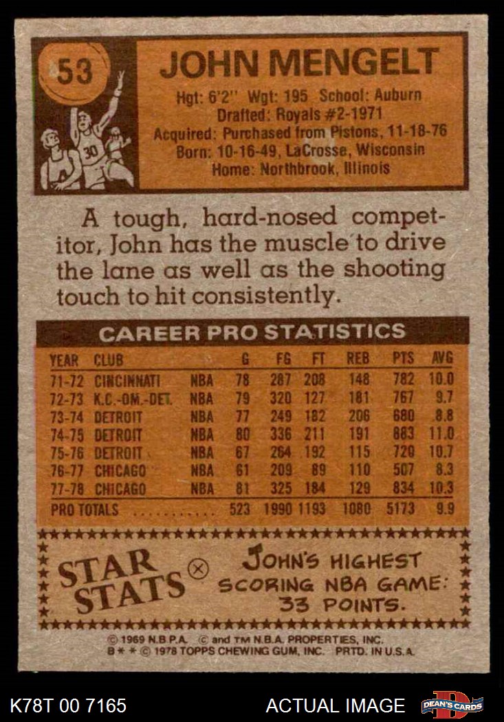 1978 Topps #53 John Mengelt 6.5 - EX/MT+