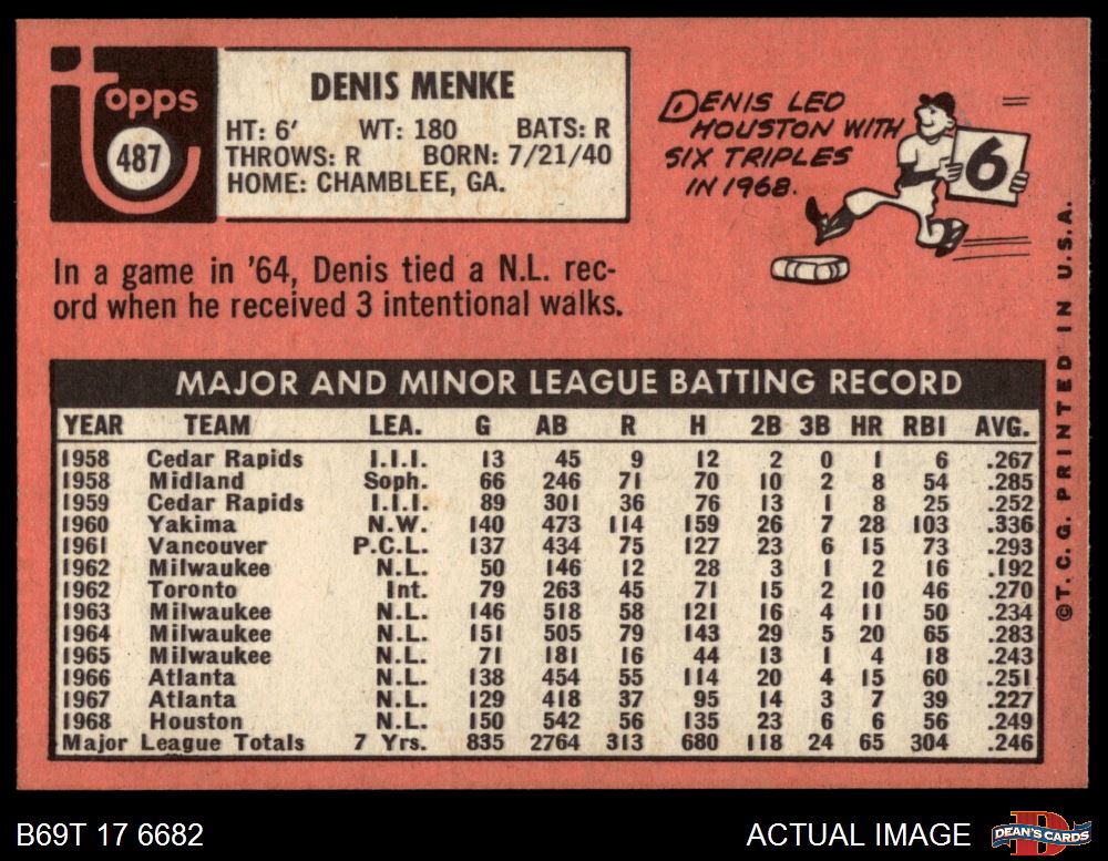 1969 Topps #487 Denis Menke