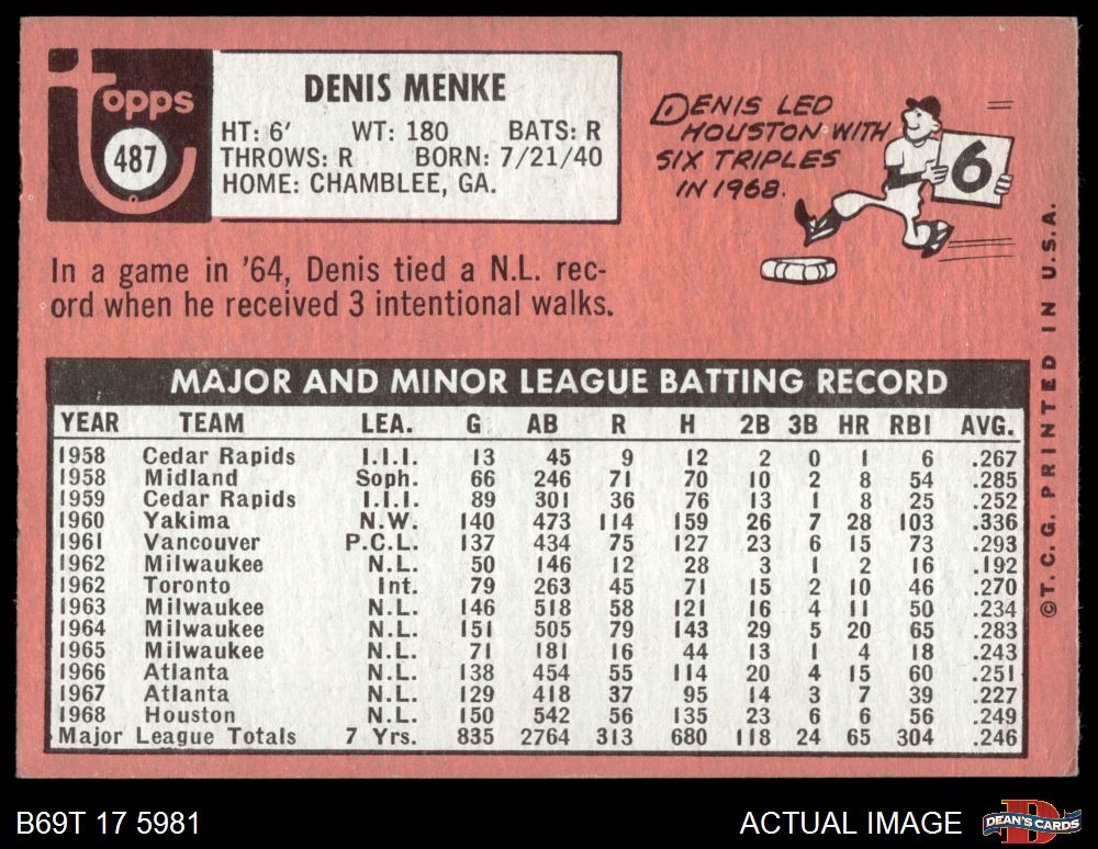 1969 Topps #487 Denis Menke 4 - VG/EX