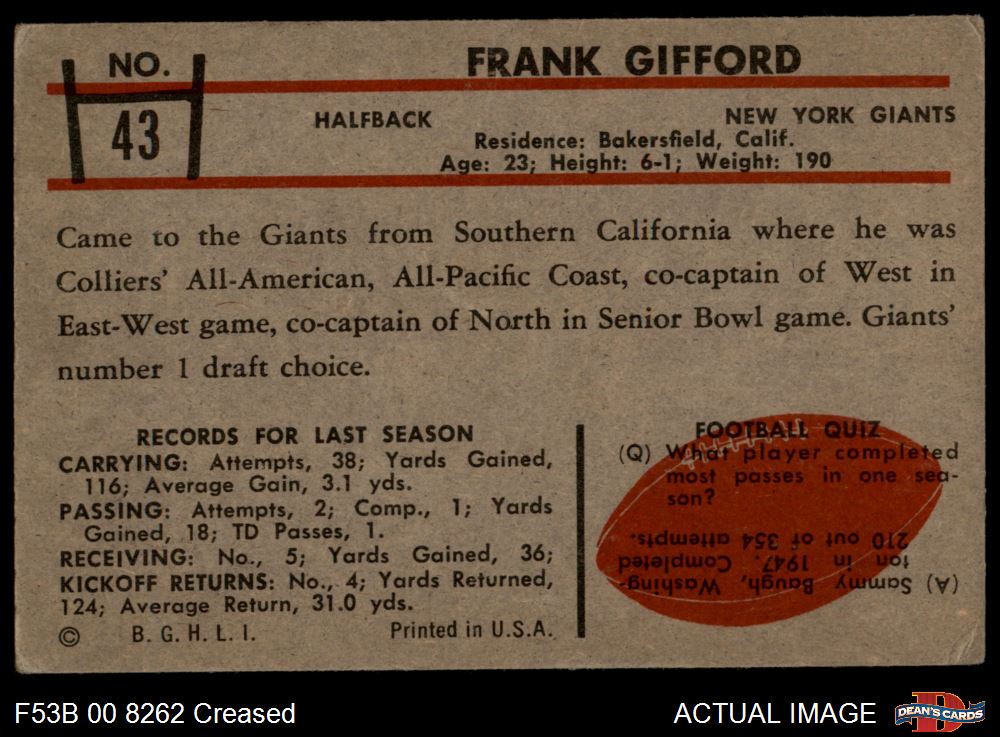1953 Bowman #43 Frank Gifford 2 - GOOD