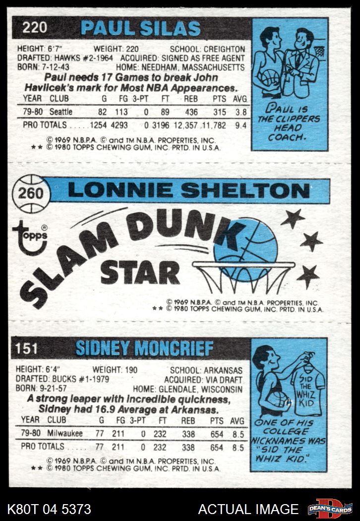 1980 Topps - Sidney Moncrief / Lonnie Shelton / Paul Silas 151 / 260 / 220 6 - EX/MT