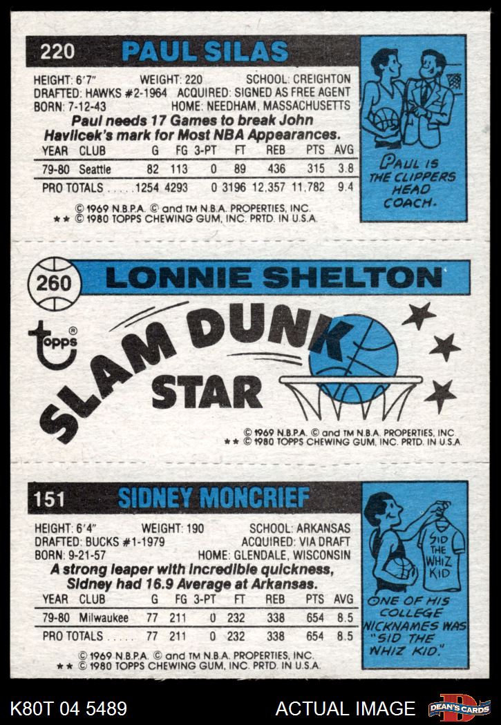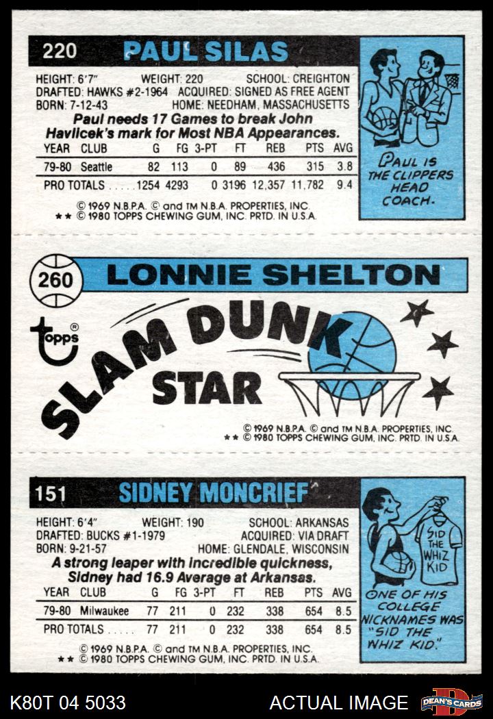 1980 Topps - Sidney Moncrief / Lonnie Shelton / Paul Silas 151 / 260 / 220 7 - NM
