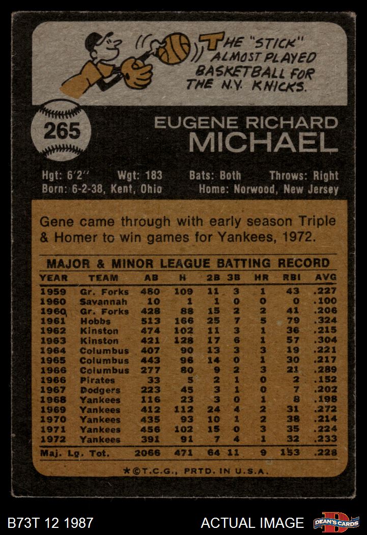 1973 Topps #265 Gene Michael 3 - VG