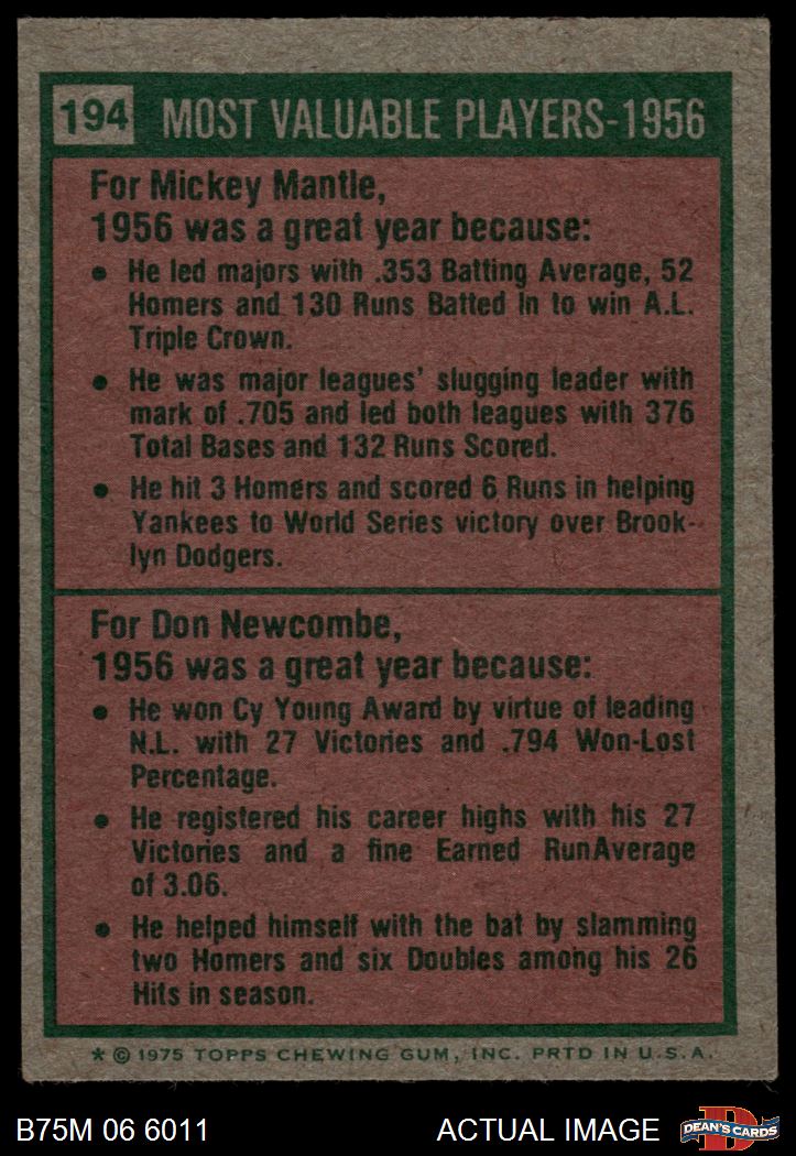 1975 Topps Mini #194 1956 MVPs