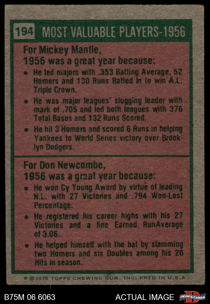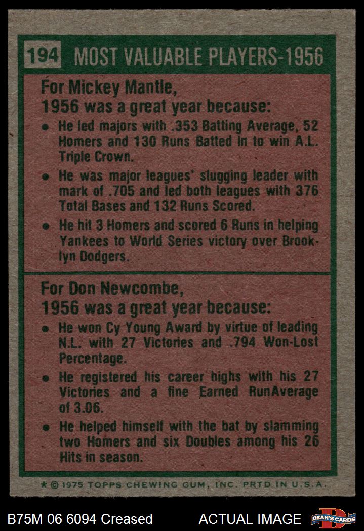 1975 Topps Mini #194 - Mickey Mantle / Don Newcombe 1956 MVPs 3 - VG