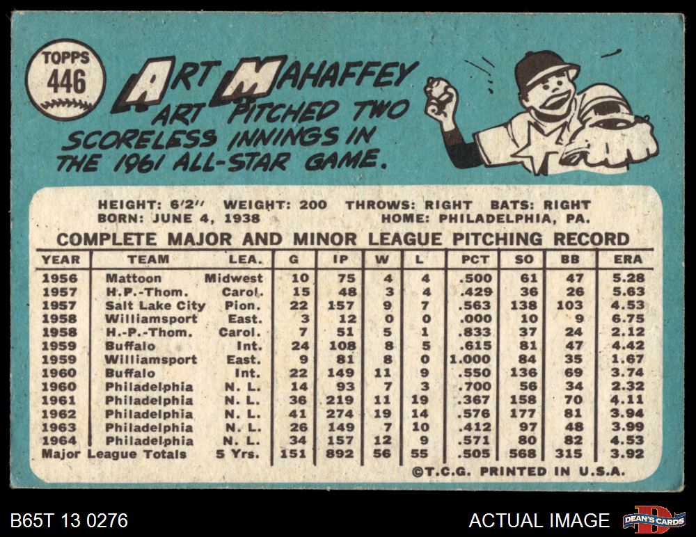 1965 Topps #446 Art Mahaffey 2 - GOOD