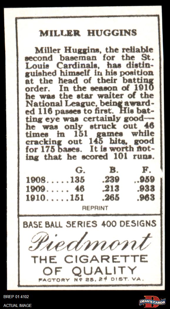 1911 T205 Reprint #92 Miller Huggins 8 - NM/MT