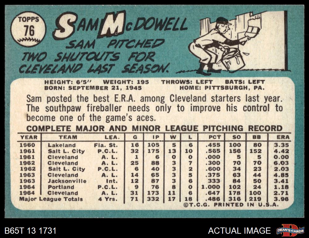 1965 Topps #76 Sam McDowell