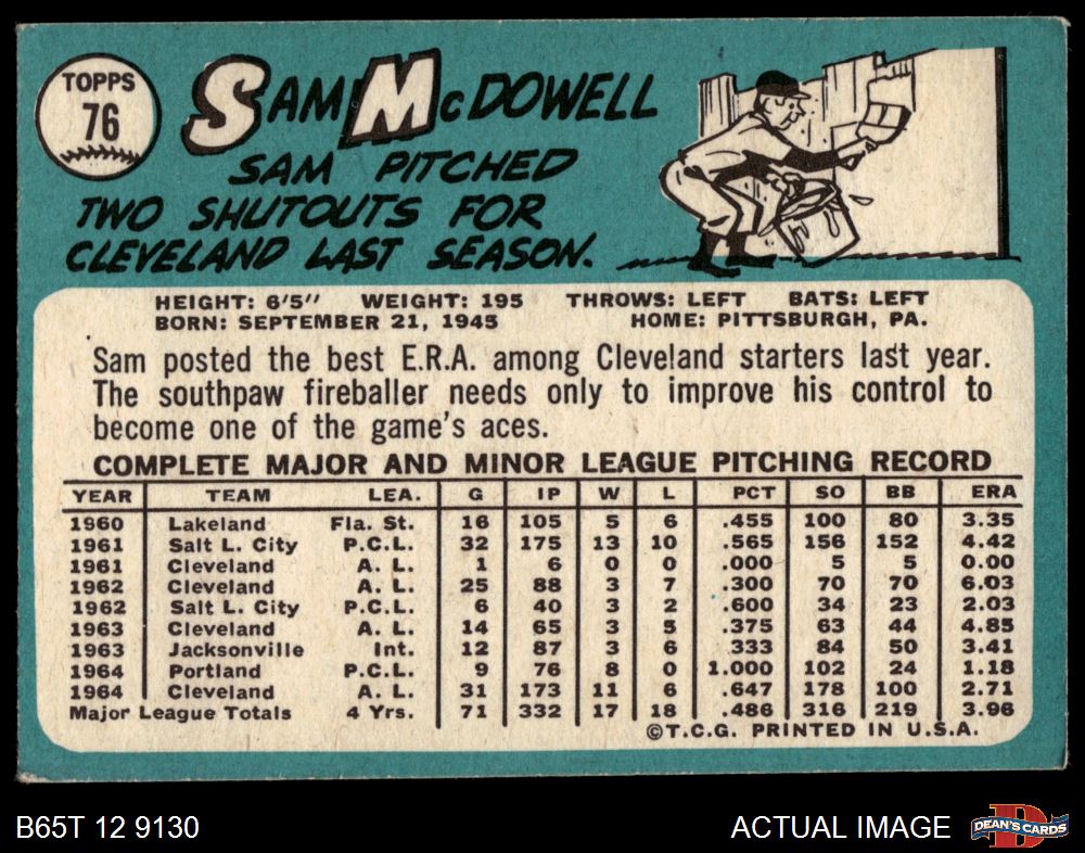 1965 Topps #76 Sam McDowell 3.5 - VG+