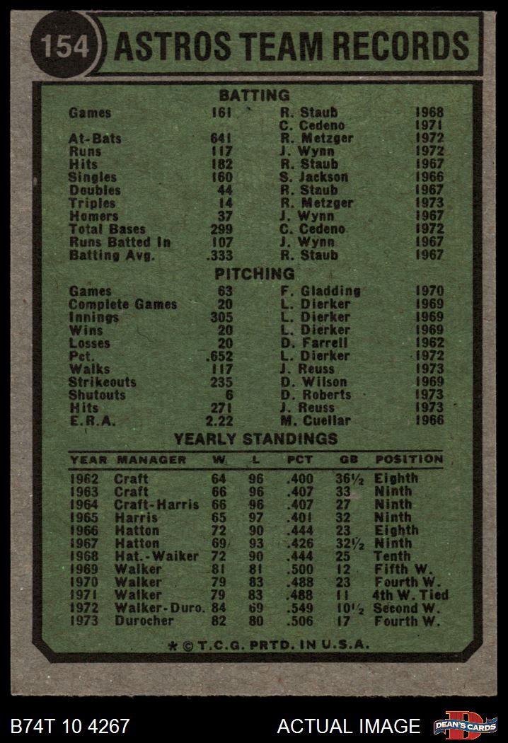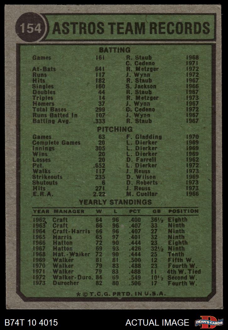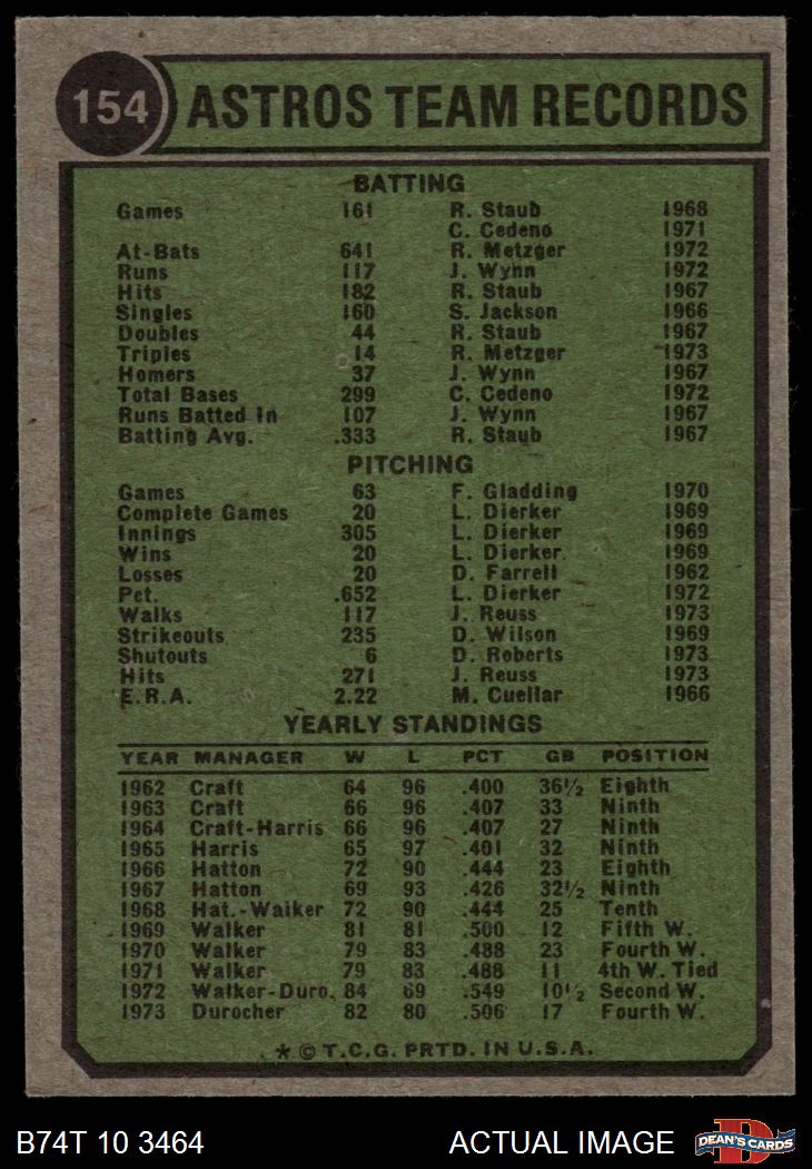1974 Topps #154 Astros Team