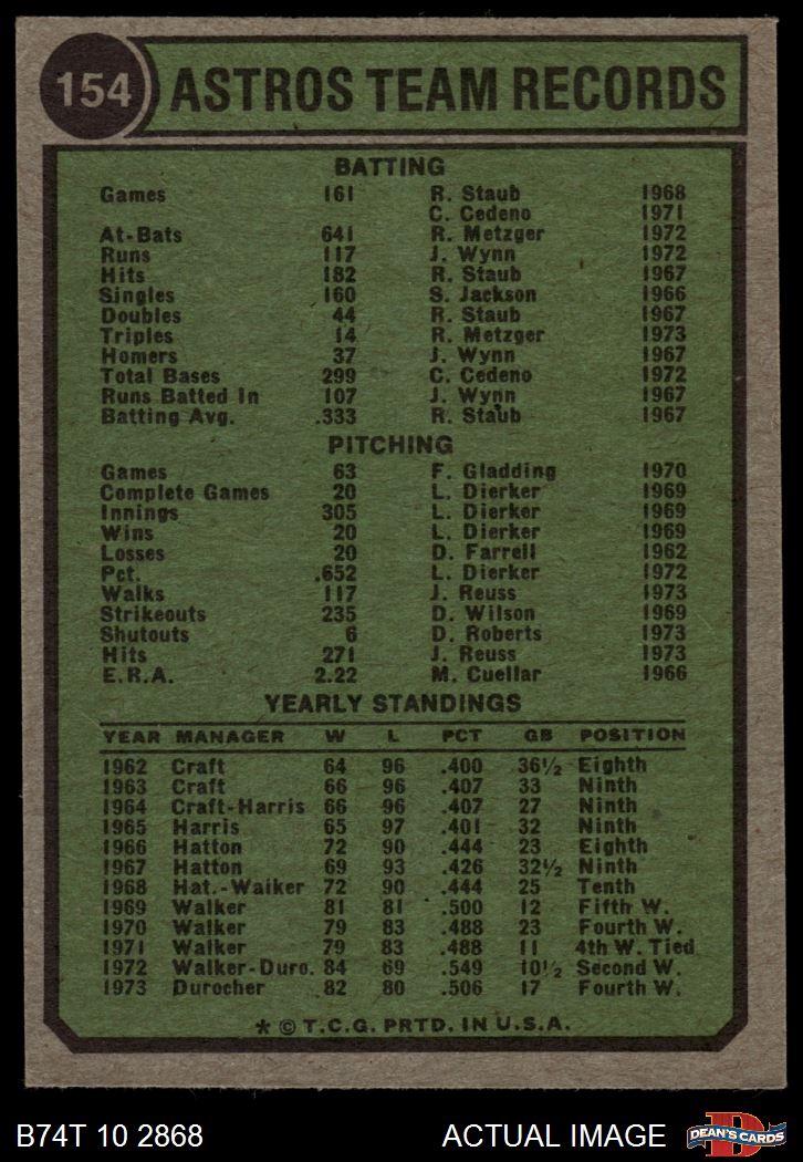 1974 Topps #154 Astros Team 3.5 - VG+
