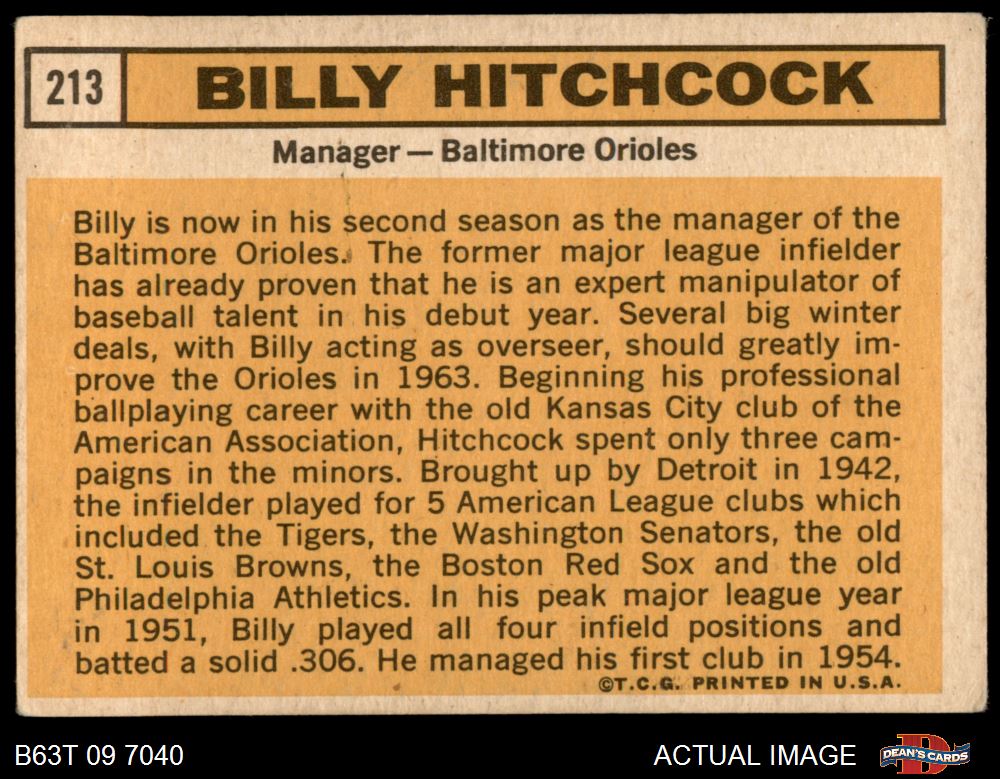 1963 Topps #213 Billy Hitchcock AUTOGRAPHED