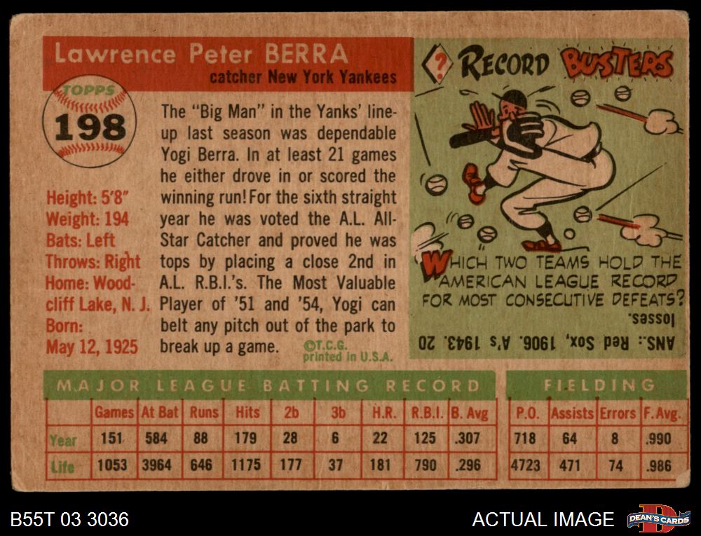 1955 Topps #198 Yogi Berra 2 - GOOD
