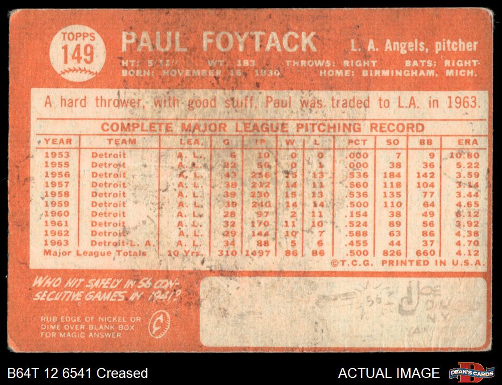 1964 Topps #149 Paul Foytack 1 - POOR